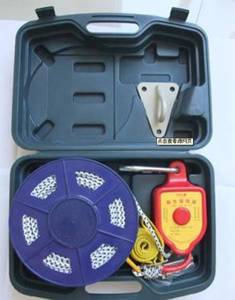 适用于公安爆警察、消防队员抢险救援工作,轮船、海上油田、电业、高空作业的安全防产品简介:救生缓降器是一种高楼自救逃生装置。是楼房等高层建筑突发火灾事件被困者迅速脱险的最佳选择。使用该救生缓降器,被困人员可迅速自行脱离险境,无须借助外援,该产品技术先进,性能可靠,使用安全。宾馆、酒店、学校、住宅楼、办公楼、各种娱乐、公共场所。 产品符合国家GA413-2003标准。 产品主要技术参数及部件性能: 使用最高高度(米): 200 使用负荷重量(公斤): 20-100 每次限载人数(个): 1 缓降速度(米 / 秒): 0.16-1.5 反复使用:一台救生缓降器可以救多人。 采用航空用钢丝为内芯,外用高强涤纶纱编织的缓降器绳承载能力大于 1 吨( T )。 安全钩带有安全套结构,承载能力大于 1 吨( T )。 安全带采用工业涤纶丝编织而成,承载能力大于 1 吨( T )。 产品组成: 救生缓降器由调速器、缓降绳索、安全带、安全钩、绳索卷盘、辅助连接用绳索组成。 产品适用范围: 1、各类建筑空中救险、逃生装备(住宅楼、办公楼、写字楼、教学楼、商业楼、银行、医疗建筑、宾馆、等公共、娱乐场所)。 2、消防救援,公安、武警及部队装备等用途。 3、高(低)空作业装备。 4、抗震救灾。 产品特点: 1、采用最流行的优化组合设计,造型美观,结构及受力更加合理。 2、使用航空用钢丝缓降绳,强度高、阻燃、耐磨、匀速下降,无空程。 3、耐高温耐磨损,安全系数大。 4、体积小,重量轻(包装箱尺寸:350x240x115mm),使用方便。 6、反复使用,一台救生缓降器可连续多次救人运物。 7、适用高度在0-200米之间,用途广泛,险情发生时可随时高楼救人。