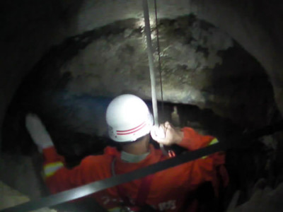 到达事故现场后,立即对事故现场进行侦查,有一名中年男子被困,意识较为清醒。指挥员根据现场情况立即下达指示,分成两个战斗小组:第一小组为救援小组,防止救援时对被困人员造成二次伤害,使用大绳牵引实施救人;第二组警戒小组,由于救援现场围观人员较多,所以对现场进行现场警戒,保证现场施救人员安全。