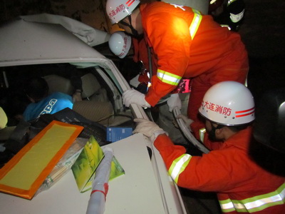 10月7日18时22分,大连消防旅顺中队接到指挥中心命令:位于旅顺口区旅顺北路塔河湾浴场路段发生三车相撞事故,两名人员被困。旅顺中队接到命令后迅速出动2辆消防车、10名指战员立即奔赴现场救援。